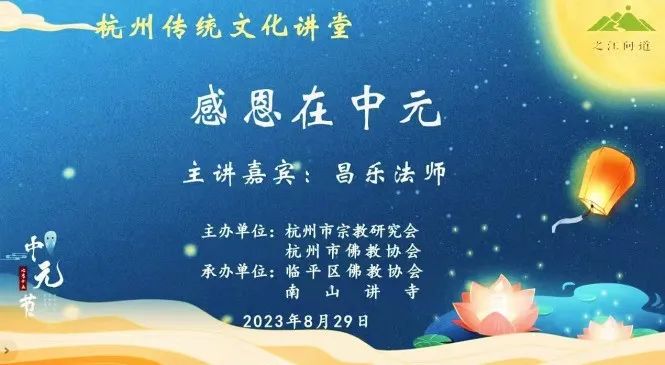 特邀:临平区佛教协会常务副会长、“南山讲寺”住持上昌下乐法师作“我们的节日”之“中元节”专题讲座。