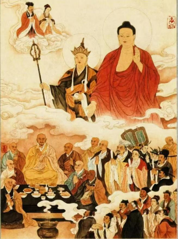 此日祭祀盛行:日间祭奠先人,夜施水灯以寄哀思;抑或河灯普渡孤魂野鬼;抑或燃炮以佑家宅。。。因其以祭祀鬼神为中心,故道教“中元节”被称为鬼节。“中元节”形成前,七月十五佛教称为“盂兰盆”(梵文Ulambana)译“救倒悬”:三恶趣之苦无法描述,只能以头倒悬为喻。出处《盂兰盆经》述佛陀大弟子目犍连因不忍其母堕饿鬼道,问法于佛。佛令其以百味饭食五果等供养十方佛僧,令母脱苦。即为“盂兰盆供”与“盂兰盆”节之由来!“是佛子修孝顺者,应念念中常忆父母,乃至七世父母。年年七月十五日,常以孝慈忆所生父母,为作盂兰盆,施佛及僧,以报父母长养慈爱之恩。若一切佛弟子,应常奉持是法”-—《佛说盂兰盆经》 《盂兰盆经》于西晋入中国。“目连救母”的故事,与儒家孝道暗合,被南朝梁武帝提倡,将其定为民俗节日。每逢七月十五,梁武帝于各大佛寺设盆供养僧众之功德。